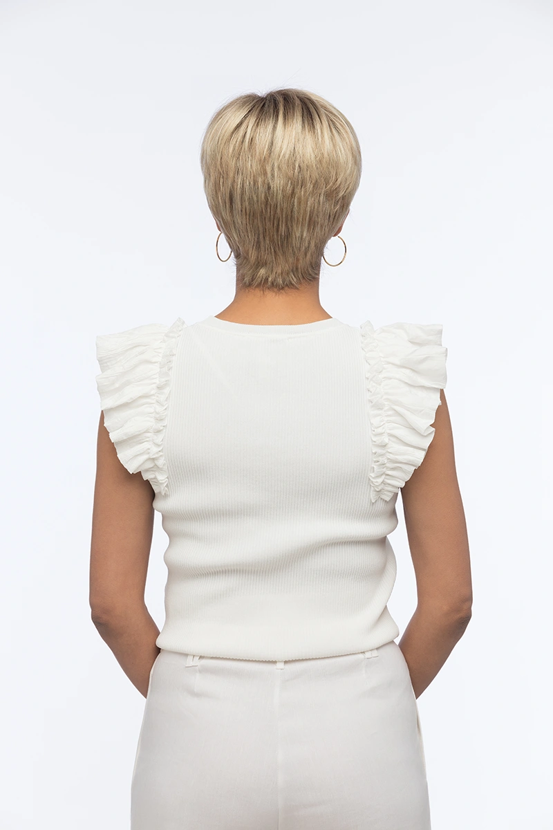 Monofilament Top with Swiss Lace+ Front | Ember exudes a fiery allure with her chic short pixie cut and side-swept fringe. Her monofilament top and ultra-soft Swiss Lace+ front creates a flawlessly natural look. Ember is perfect for those ready to make a bold statement, this striking piece is designed to turn heads!
