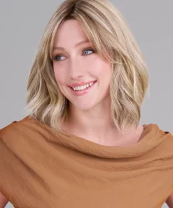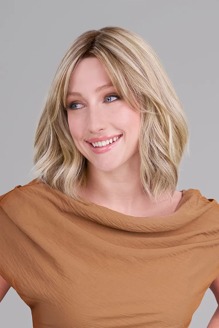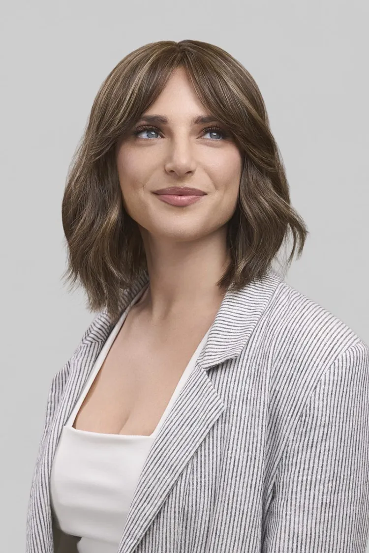 Hollie Petite brings casual sophistication to smaller head sizes with her shoulder-length cut and subtle, natural waves. Trending bangs and Heat-Friendly Synthetic fiber allow for versatile styling, while a SmartLace™ front and monofilament top create a seamless, natural appearance. Light density and a hand-tied cap ensure all-day comfort and realistic movement without permatease.