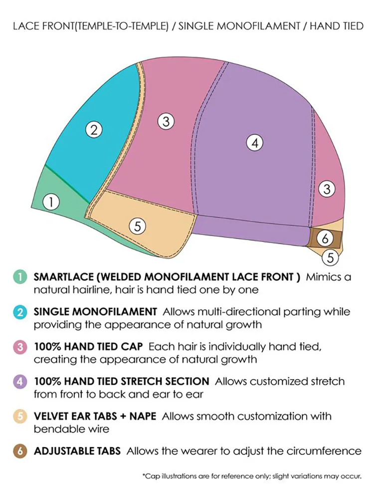 • Hand-Tied Cap: Realistic, natural movement.