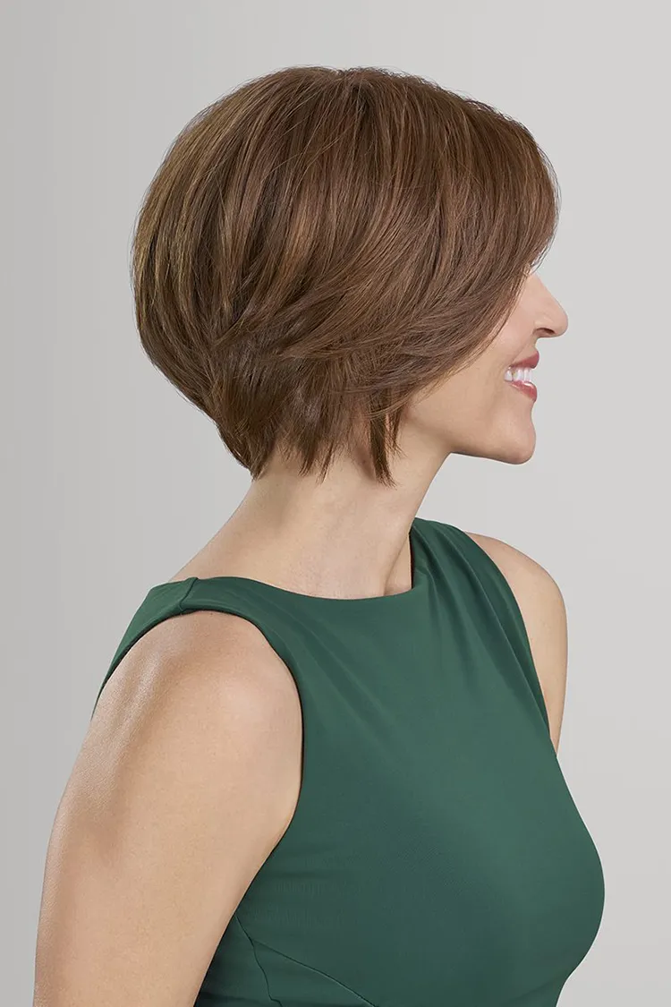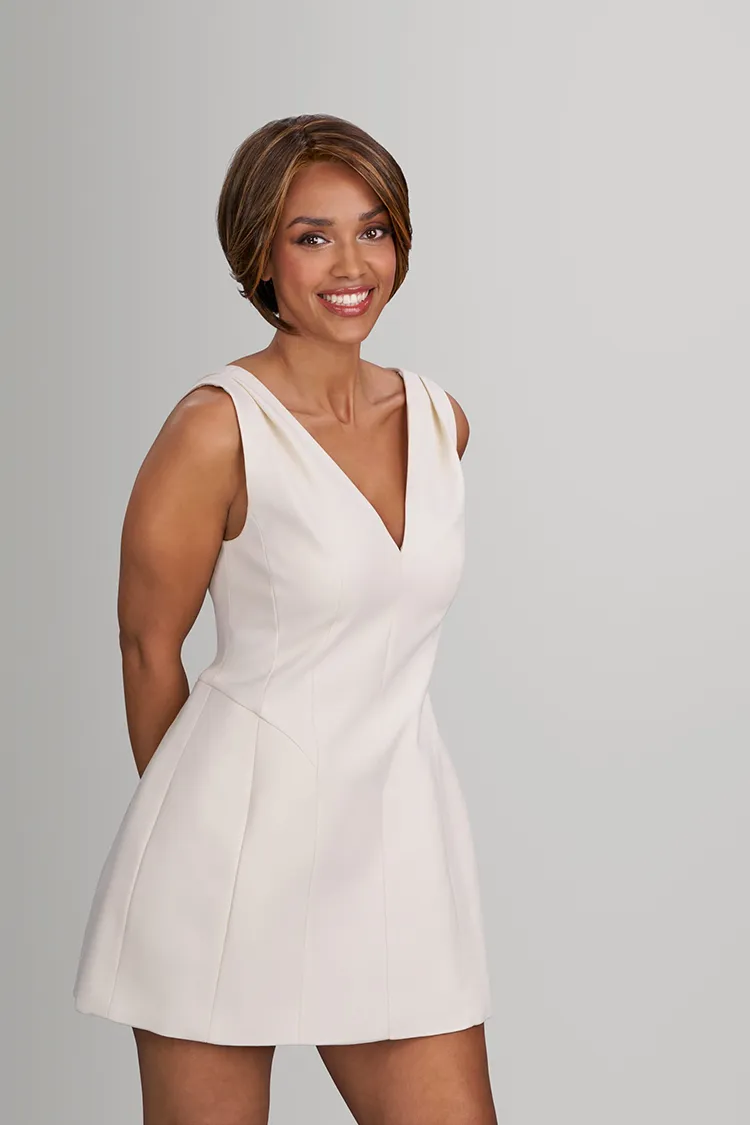 Professionnel Collection, Salon Exclusive! Mackenzie is a sleek, modern bob crafted in Heat-Friendly Synthetic fiber for endless styling options. This salon-exclusive piece features an extended SmartLace™ front for exceptional realism and a monofilament top for multidirectional parting. With its seamless stacked nape, long fringe, and softly tapered sides, Mackenzie offers a chic, wearable silhouette that balances professional polish with everyday versatility.