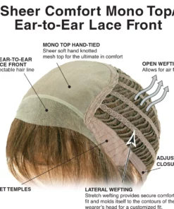 The Sheer Comfort cap features a hand-knotted soft monofilament mesh and ear-to-ear lace front, creating an invisible hairline for a flawless, natural look. Incredibly lightweight, this wig is designed for all-day, everyday comfort and offers versatile styling options, allowing you to brush it back off the face, add waves, or even pull it into a ponytail for effortless style that never compromises comfort.