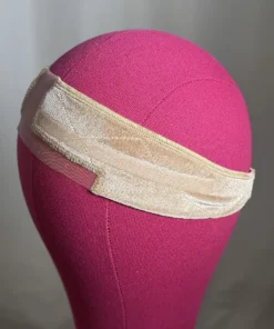 This dual sided silicone grip headband has an adjustable elastic closure which is not only easy to put on, but the elastic style grip is perfect for those of us with a flatter back of the head. This grip comes in beige, which I recommend for lighter colored wigs or wigs without roots. The sheer lace parting area and fine details of the front, make this grip invisible under any type of wig. Say goodbye to glues, adhesives, and grips that fall short, this is my perfect grip! Designed by Dena.