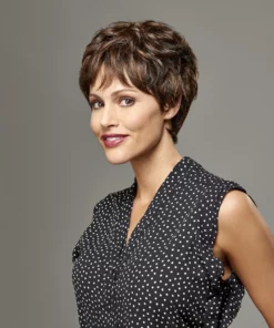 Trish by Henry Margu features short, tapered layers with graceful and flirty style. Monofilament top with lace front and hand tied back and wefted nape.